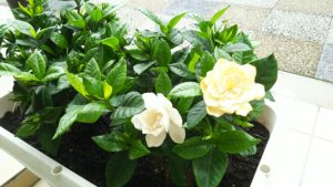 クチナシ以外にも、ダリアやラベンダーの鉢植えも並べました!